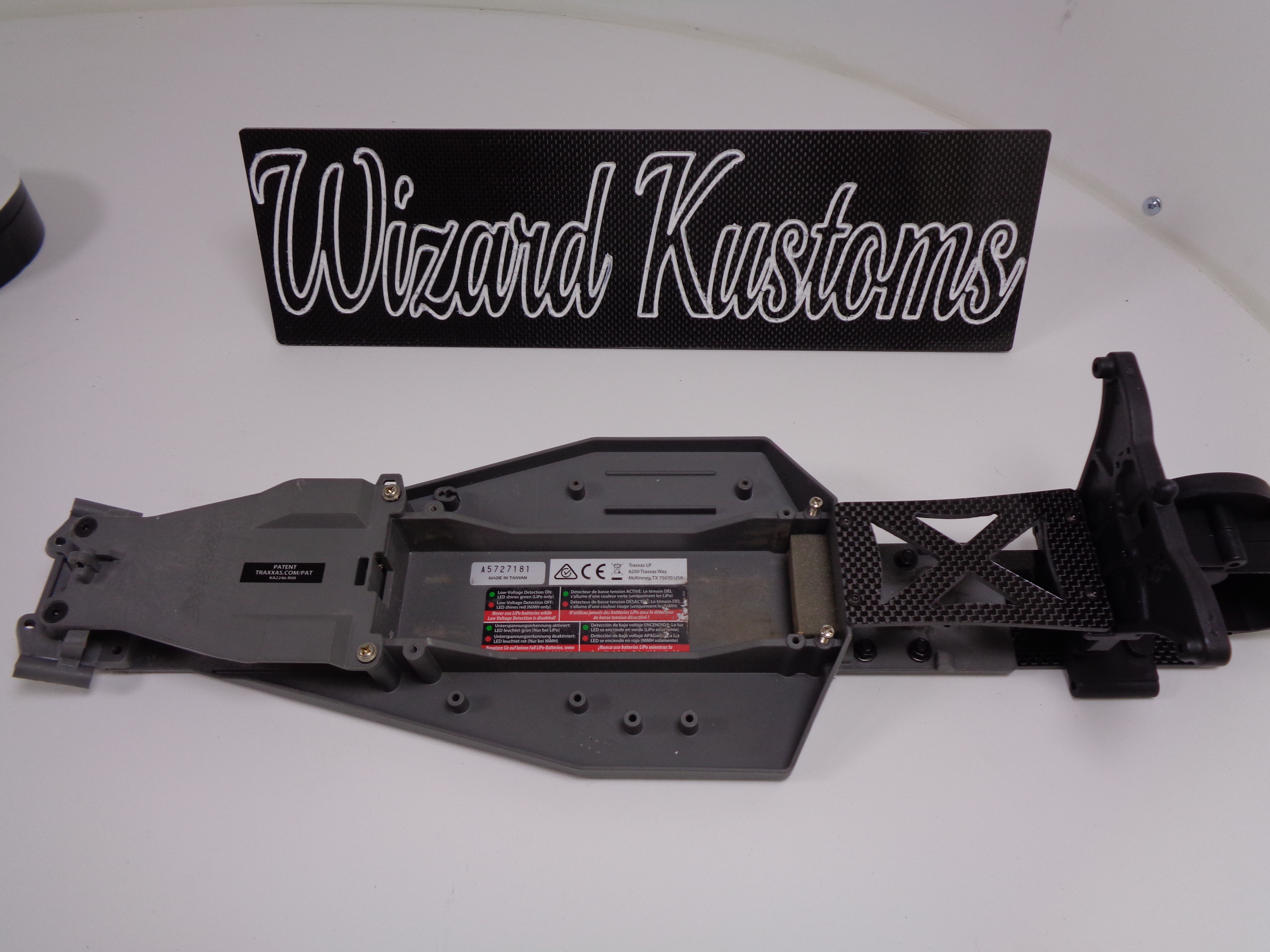 Made from 3mm thick high quality 100% carbon fiber. This kit extends your chassis for harder launches when drag racing or bashing, super light weight.
