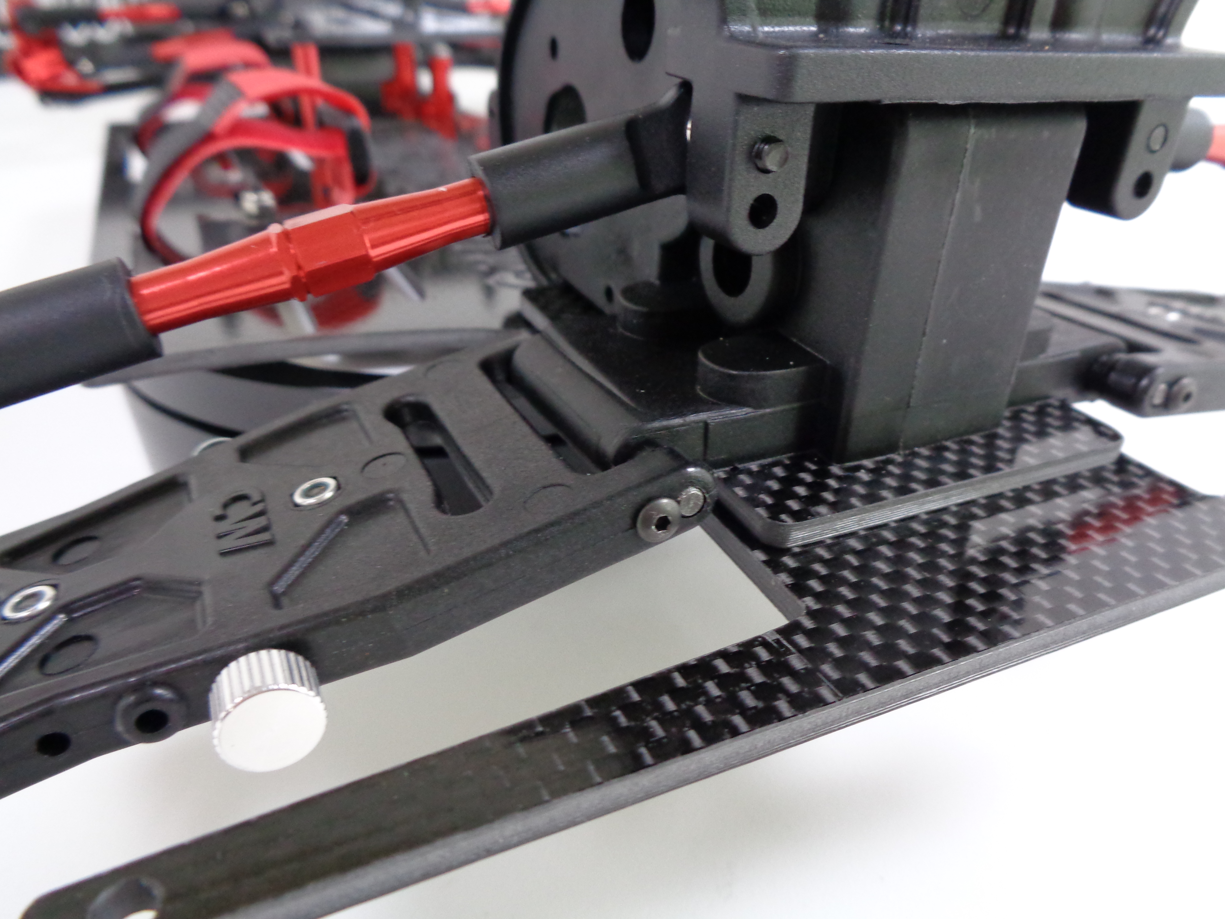 Made from high quality 3mm 100% carbon fiber. This spacer lets you raise your transmission to lower your chassis and also lets you turn your transmission around to make it a mid motor set up, only fits Wizard Kustoms chassis. $15.99